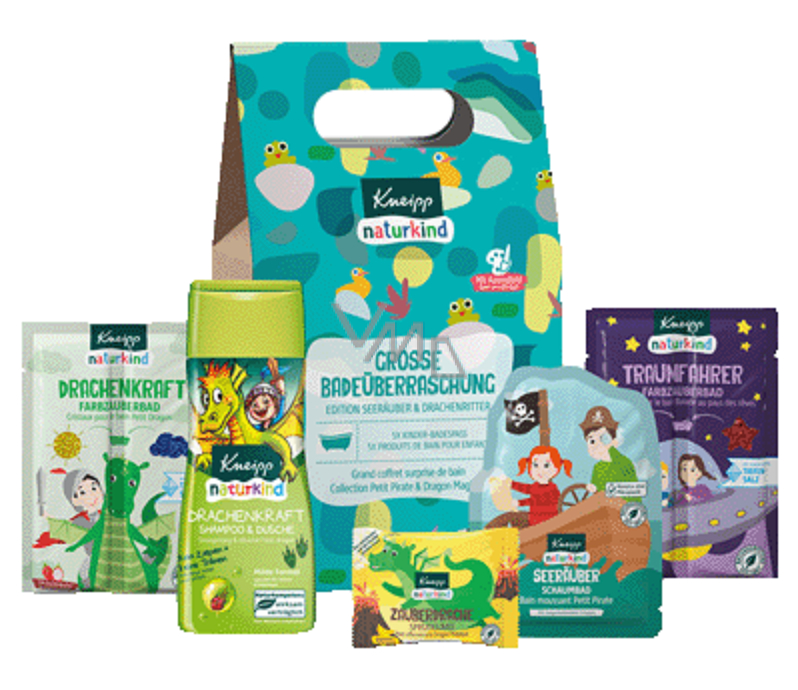 Kneipp dárková sada Velké koupací překvapení pro kluky kombinuje přírodní péči o dětskou pokožku a zábavu pro malé i velké. Veganské oleje zajistí intenzivní hydrataci a ochranu pokožky. Šampon a sprchový gel Dračí síla tělo důkladně očistí, soli a pěny zase vykouzlí barevnou koupel.
