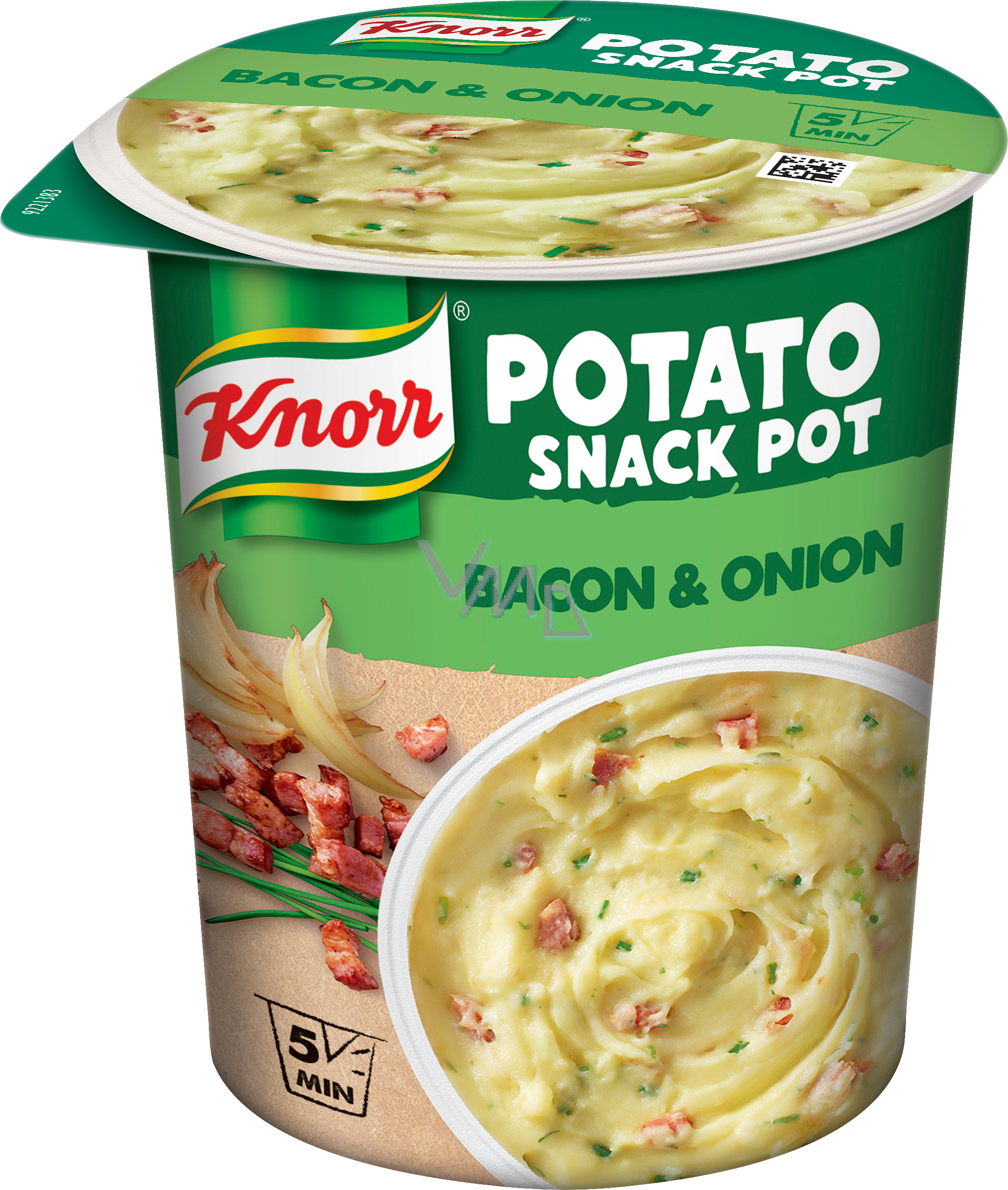 Hledáte pořádnou vydatnou svačinu s kvalitními ingrediencemi? Dejte si jednoduše skvělou svačinu Knorr Snack bramborovou kaši se slaninou a cibulí. Už za 3 minuty si můžete vychutnat hustou porci brambor. Nový Knorr Snack pot je ideální volba pro rychlou teplou vydatnou svačinu. Potřebujete už jen horkou vodu a vidličku, abyste zažili tu skvělou chuť kvalitních těstovin s lahodnou omáčkou nebo bramborové kaše s velkými kusy zeleniny a bylinek. Hotové za 3 minuty! Před zkouškou, v kanceláři nebo venku na cestě.