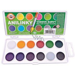Vodové barvy Anilinky vynikají pestrými a sytými barvami. Vhodné jsou pro výtvarné návrhy, kolorování, malby portrétů, krajin, velmi žádané jsou při malování kraslic. Velikost tablet je 22,5mm v průměru.