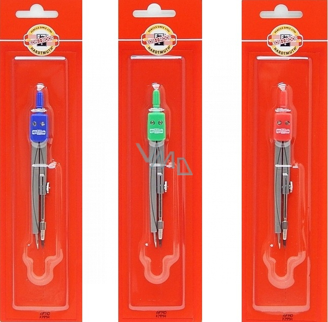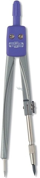 Kružítko kovové, lámací s vyměnitelnou jehlou pro základní školy je určeno pro rýsování kružnic o průměru 5-125 mm. Ramena jsou výlisky ze slitiny zinku, povrchová úprava práškový plast, barevný odstín šedá metalíza (imitace Niklu), závěška plastová v barvě černé, červené, modré, zelené nebo lila.