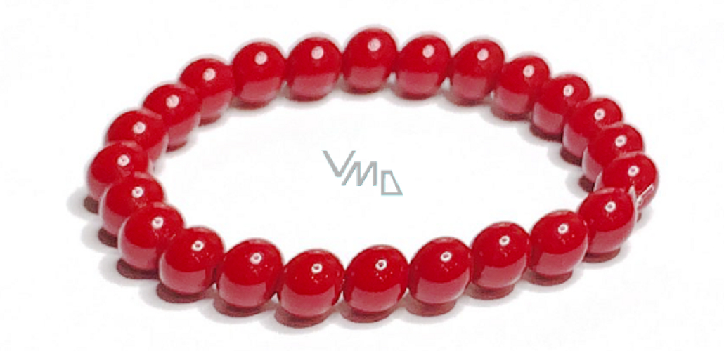 Korál červený náramek elastický přírodní kámen, kulička 8 mm / 16 - 17 cm
