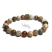 Koral skamieniały z królewską mantrą bransoletka elastyczna naturalna, kuleczka 8 mm / 16 - 17 cm