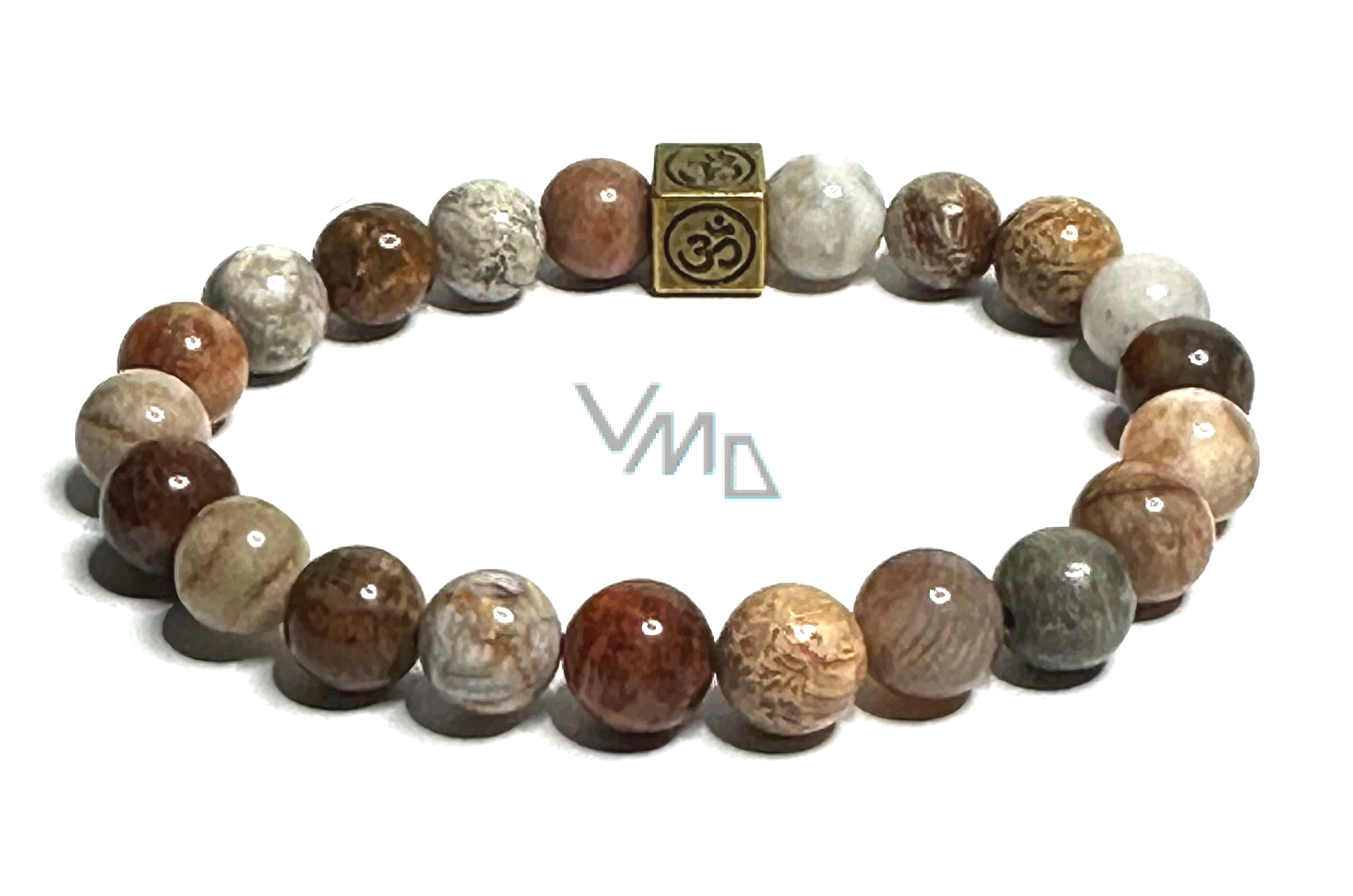 Koral skamieniały z królewską mantrą bransoletka elastyczna naturalna, kuleczka 8 mm / 16 - 17 cm