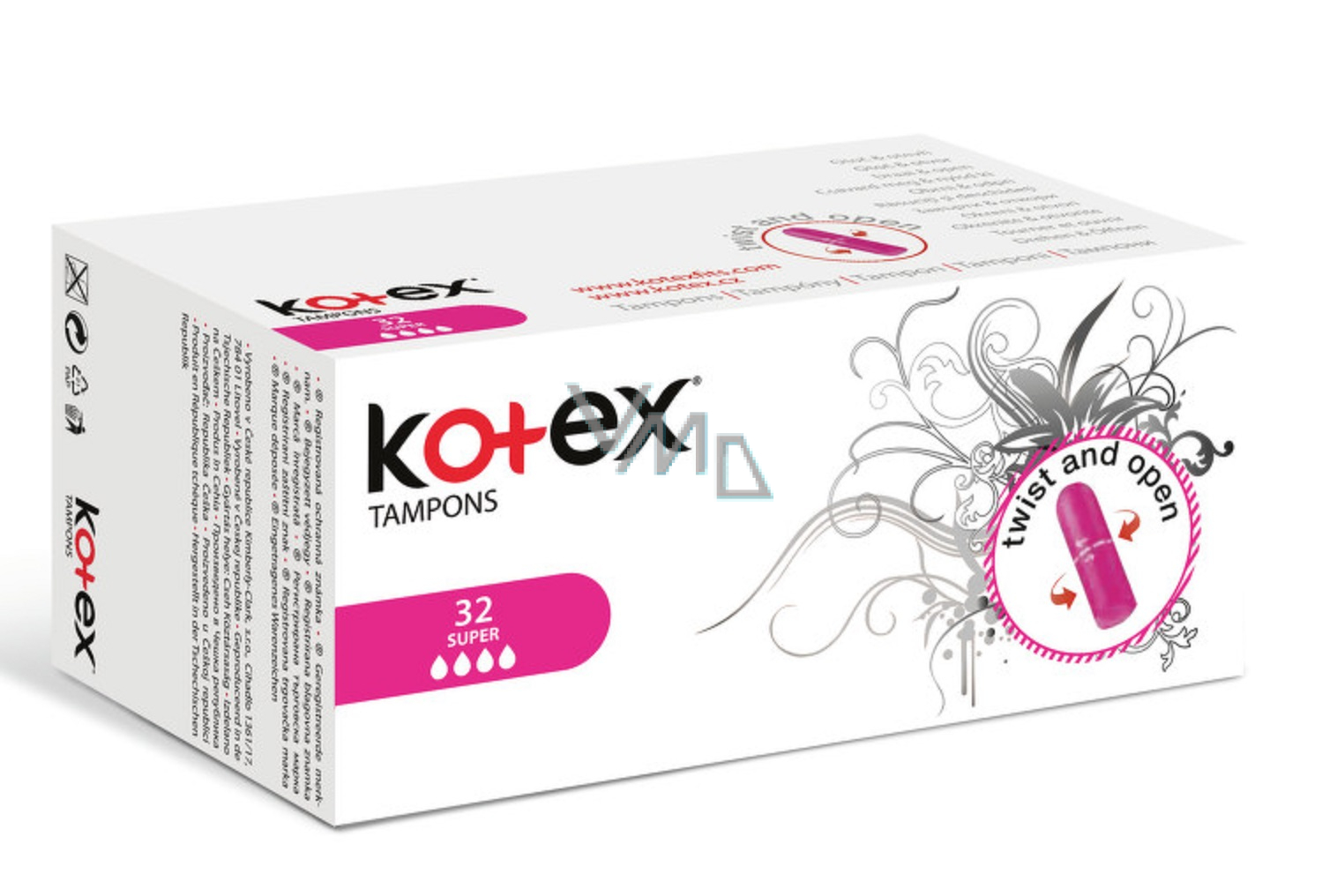 • Jedinečný mechanismus Kotex® „otoč a otevři“ pro pohodlné vybalení tampónu.