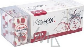 Používáním tamponů Kotex se nabízí svoboda pohybu, pohodlí při použití a spolehlivost. Varianta "super" je určena pro silnou menstruaci.