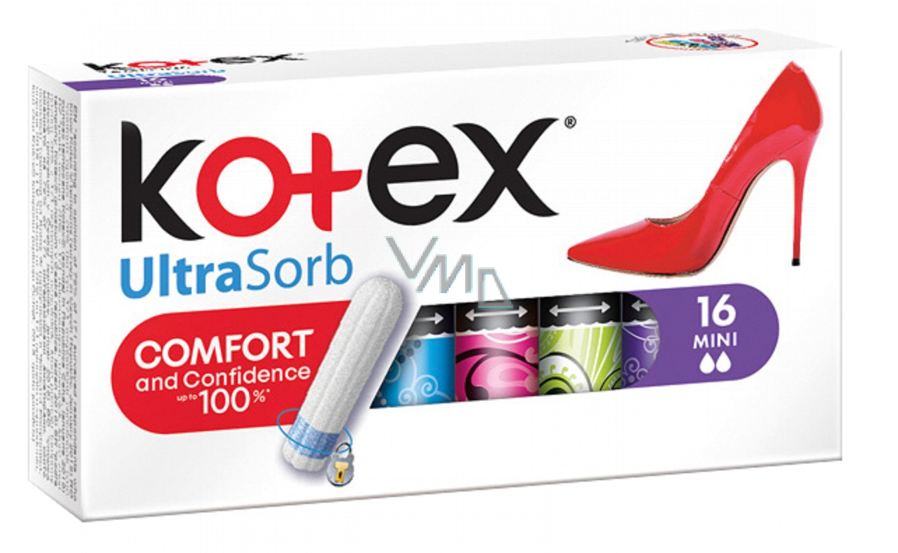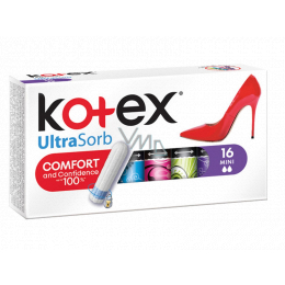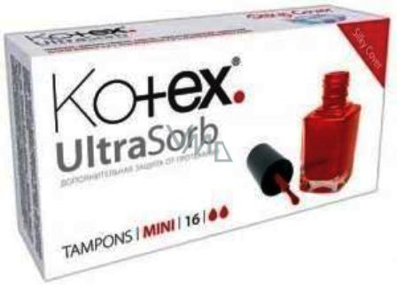 Tampony Kotex Ultrasorb mają specjalnie zaprojektowane niebieskie rdzenie chłonące, wykonane z wysoko chłonnych włókien, które zapobiegają przeciekaniu. Gładka jedwabista powierzchnia i zaokrąglony koniec ułatwiające wprowadzanie. Unikalny system "Twist&open" dla łatwego rozpakowania tamponu. Pojedyncze tampony pakowane w stylowe pastelowe kolory, które wyrażają pewność siebie nawet w czasie okresu. Wariant UltraSorb Mini to idealne tampony dla dziewcząt, które dopiero zaczynają używać tamponów. Lub dla bardzo słabej menstruacji.