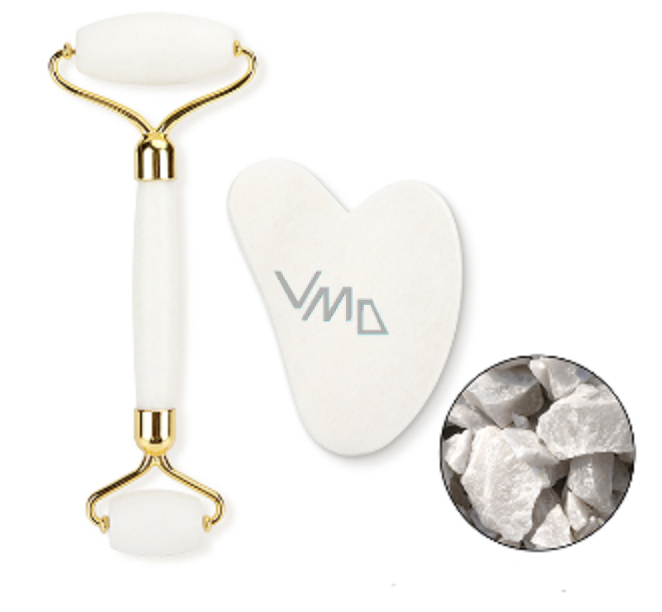 Kamień Gua Sha 5 x 8 cm + wałek do masażu 14 x 5,5 cm redukuje zmarszczki, obrzęki, poprawia elastyczność skóry, zestaw bez opakowania