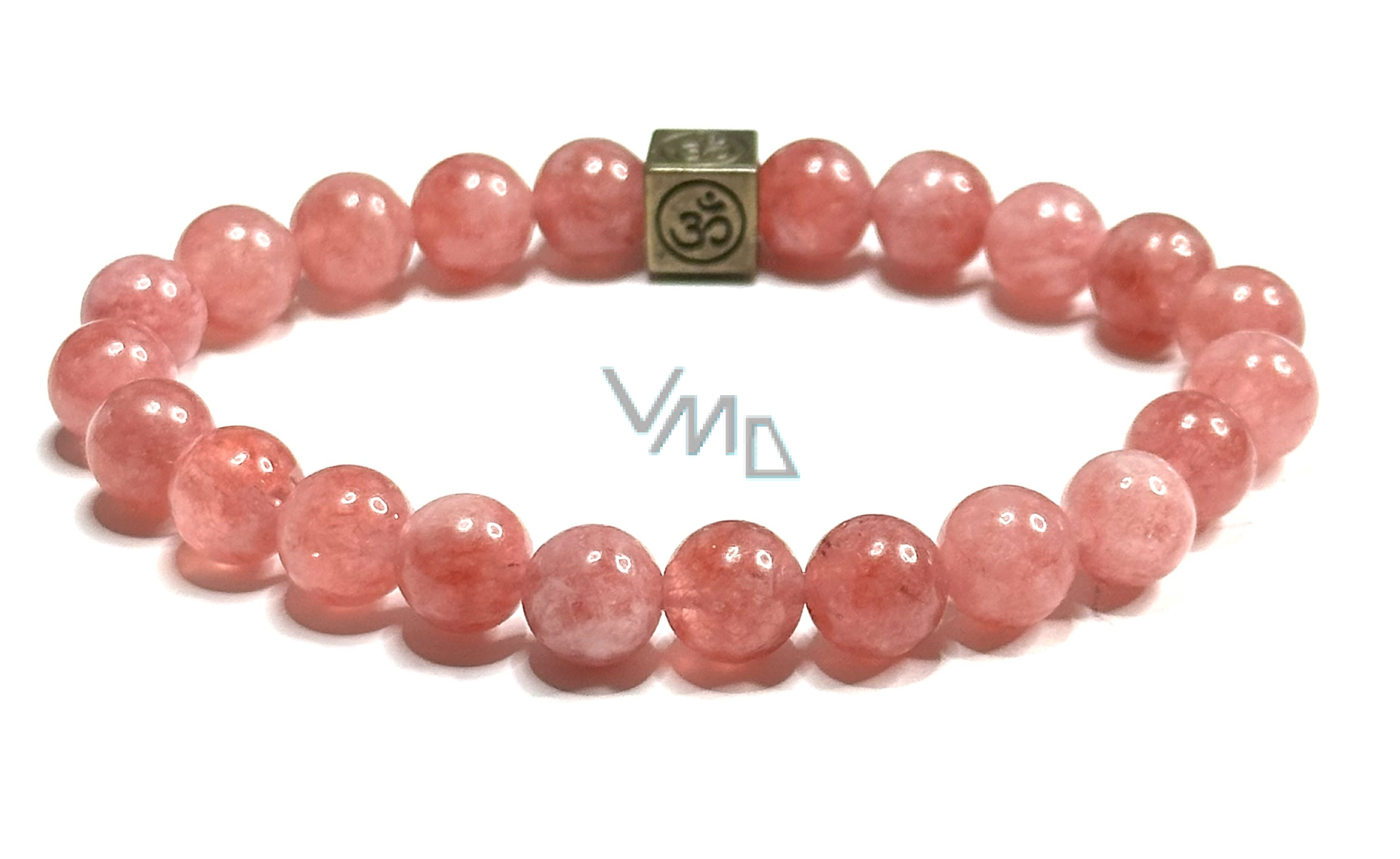 Kryształ różowy / truskawkowy z królewską mantrą Óm elastyczna bransoletka naturalny kamień, kulka 8 mm / 16 - 17 cm, AAA jakość, najdoskonalszy uzdrowiciel91.35 PLN