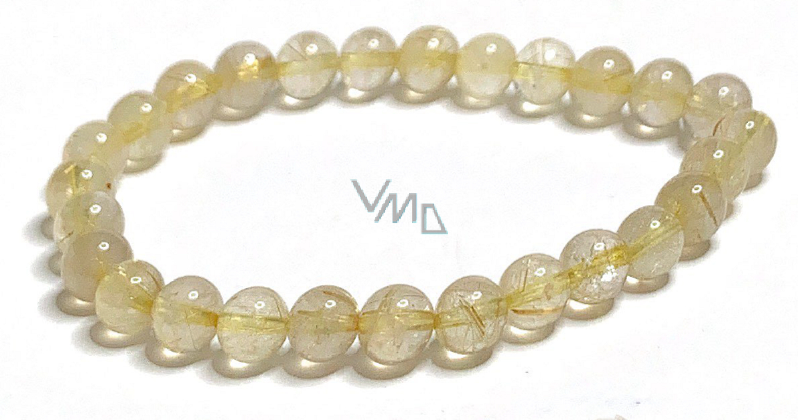 Kwarc z Rutylem bransoletka elastyczna naturalny kamień, kuleczka 6 mm / 16 - 17 cm, najdoskonalszy amulet