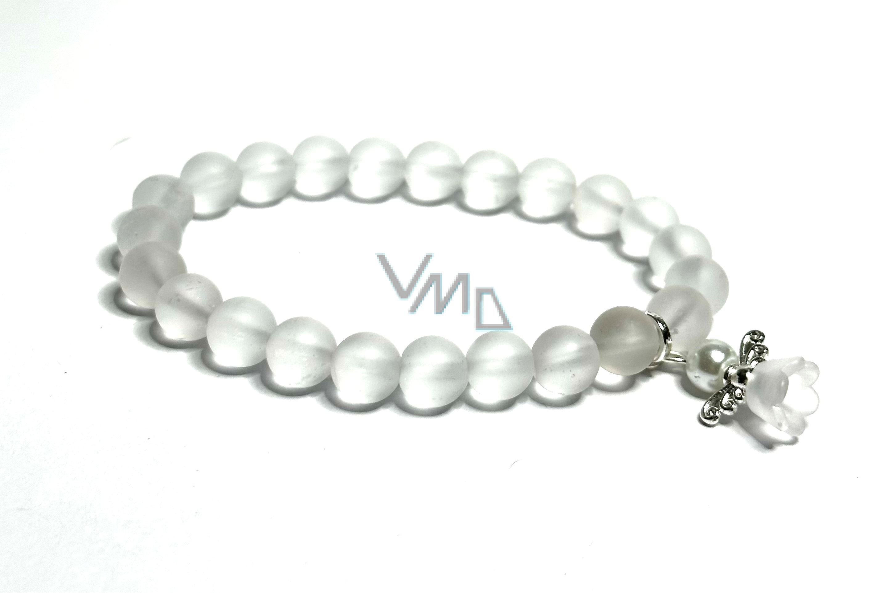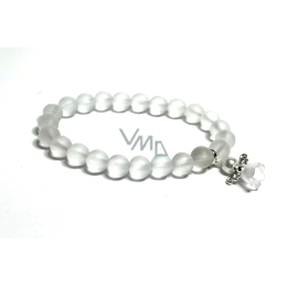 Kryształ górski + Anioł odpinany zawieszka, bransoletka elastyczna naturalny kamień, kuleczka 8 mm / 16 - 17 cm, kamień kamień