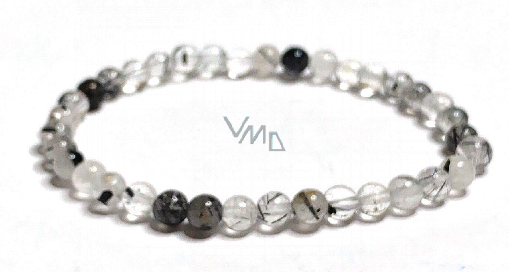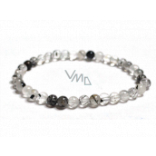 Bransoletka z Kwarcu z Turmalinem elastyczna naturalny kamień, kuleczka 5 mm / 16 - 17 cm, kamień kamienny