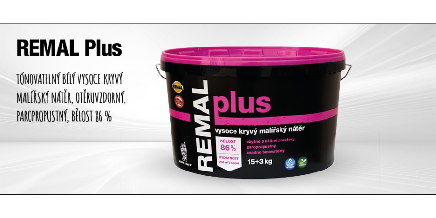 REMAL Plus – bílá malířská barva s výbornou kryvostí, ideální pro běžné vnitřní prostory.