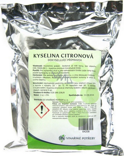 Krystaliczny proszek bezbarwnej i białej barwy, bez zapachu. CAS: 5949-29-1 - kwas cytrynowy monohydrat E330.