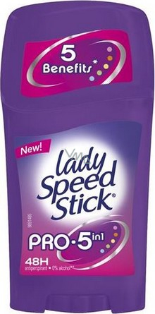Lady Speed Stick Pro 5v1 nezanechává bílé stopy a je bez alkoholu. Jedinečné složení s novou vůní pro ochranu až 48 hodin.