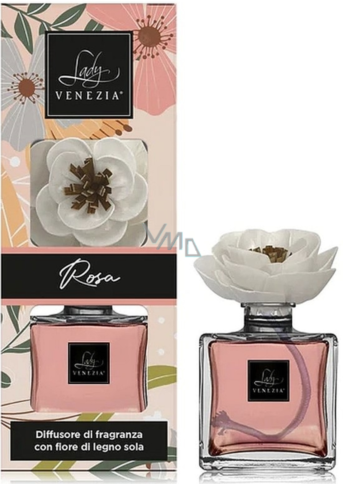 W otoczeniu aromatycznych nut, wzbogacony o elegancki flakon i dyfuzor zapachowy w kształcie kwiatu. Kolekcja zapachów do domu "Dream". Stwórz w swoim domu rafinowaną i świąteczną atmosferę z nową kolekcją pokojowych dyfuzorów Lady Venezia. Zapach z organicznymi składnikami zawiera czystą esencję olejków eterycznych i alkohol roślinny, wyróżnia się naturalnym zapachem i pomaga spersonalizować otoczenie, w którym żyjemy, za pomocą ciepłych zapachów, tworzących intymność i relaks. Kwiat za pomocą zanurzonego knota zanurzonego w esencji stale rozprzestrzenia zapach w powietrzu, aby zawsze tworzyć nową atmosferę.