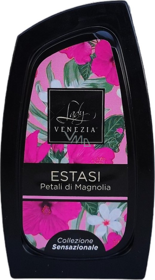 Lady Venezia Sensational Collection ESTASI. Luxusní silně koncentrovaná vonná esence z kolekce vůní Emoce a pocity. Okvětní lístky magnólie. Osvěžovač vzduchu s gelovou náplní svou intenzivní vůní provoní a absorbuje nežádoucí pachy.