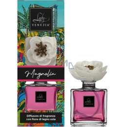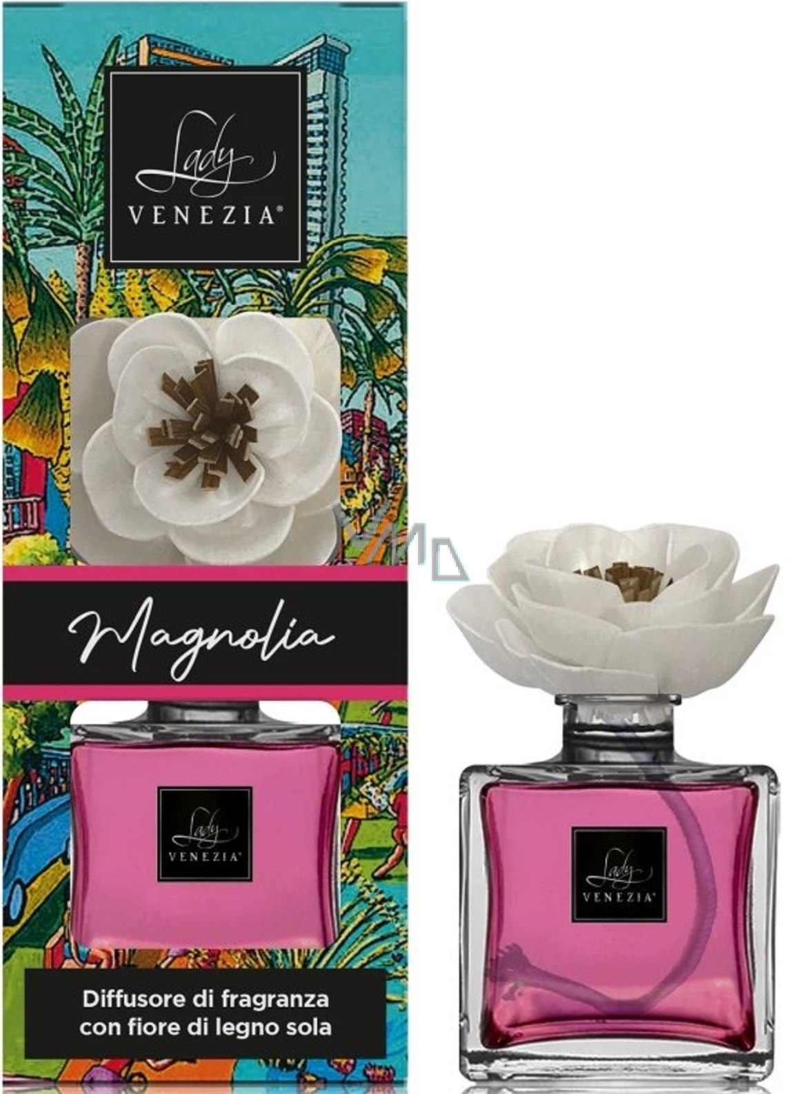 Wybór otaczających aromatycznych tonów, wzbogacony o elegancki flakon i wony dyfuzor w kształcie kwiatu. Kolekcja zapachów do domu "Naif". Stwórz w swoim domu wyrafinowaną i świąteczną atmosferę z nową kolekcją pokojowych dyfuzorów Lady Venezia. Zapachy z organicznych składników zawierają czyste olejki eteryczne i alkohol roślinny, wyróżniają się swoją naturalną wonią i pomagają personalizować przestrzeń, w której żyjemy, poprzez ciepłe zapachy, tworzące intymność i komfort. Kwiat poprzez zanurzony knot zanurzony w esencji nieustannie emituje zapach w powietrzu, aby zawsze tworzyć nową atmosferę.