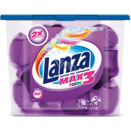 Gelové kapsle Lanza Max3 představují dávkovaný tekutý prací prostředek, který se vkládá přímo do bubnu pračky a je rozpustný ve vodě již při 30°C. Formule Lanza kapsle na barevné prádlo obsahuje aktivní složky, které pomáhají chránit prádlo před obarvením, kapsle na bílé prádlo pak navíc obsahují i optické zjasňovače, díky který bude Vaše prádlo dokonale čisté a bílé. K dostání je ve variantách Color a Regular.