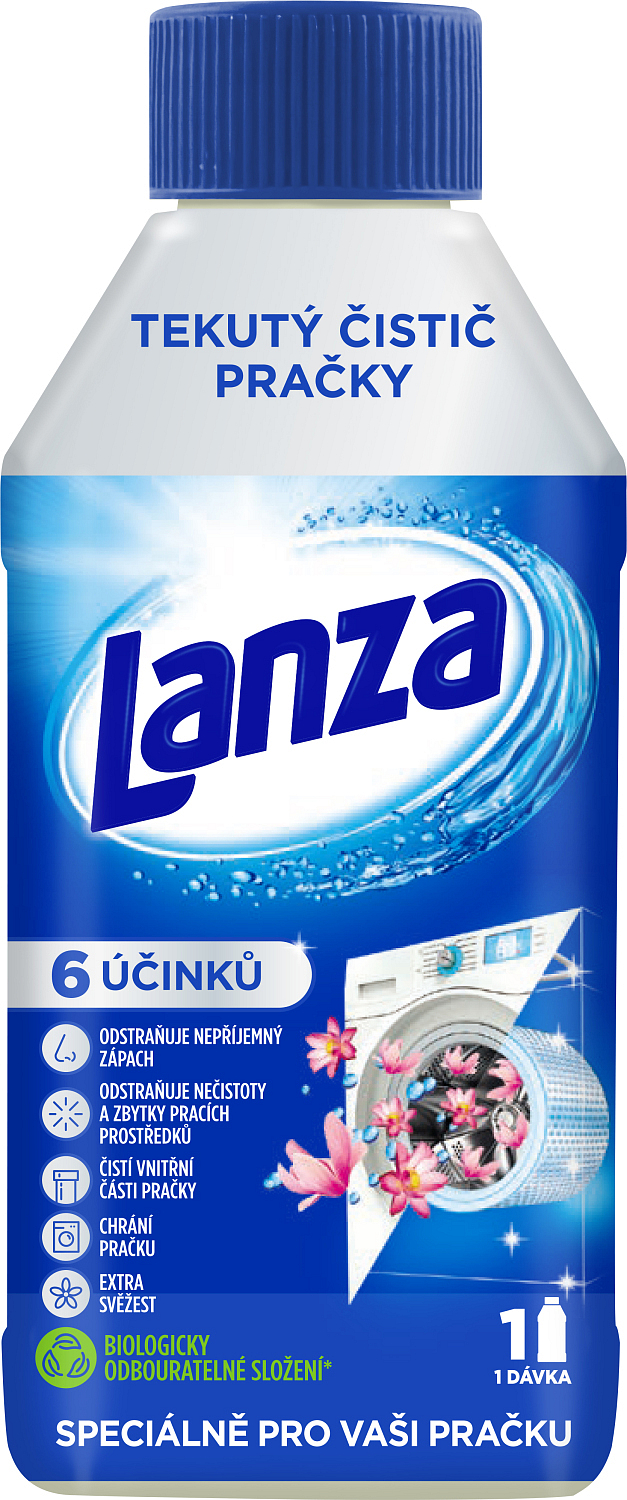 Łagodny środek czyszczący do Twojej pralki, jego wyjątkowa formuła ma potrójne działanie, czyści i usuwa zanieczyszczenia oraz resztki detergentu ze wszystkich powierzchni wewnątrz pralki, utrzymuje wewnętrzne części pralki w czystości, aby zapewnić jej optymalną pracę i pozostawia przyjemny zapach wewnątrz całej pralki. Aby uzyskać optymalne wyniki, używaj raz w miesiącu. Jeśli czyścisz pralkę po raz pierwszy i chcesz osiągnąć najlepsze wyniki, powtórz cały powyższy proces łącznie 2 razy, używając środka czyszczącego do pralki Lanza.