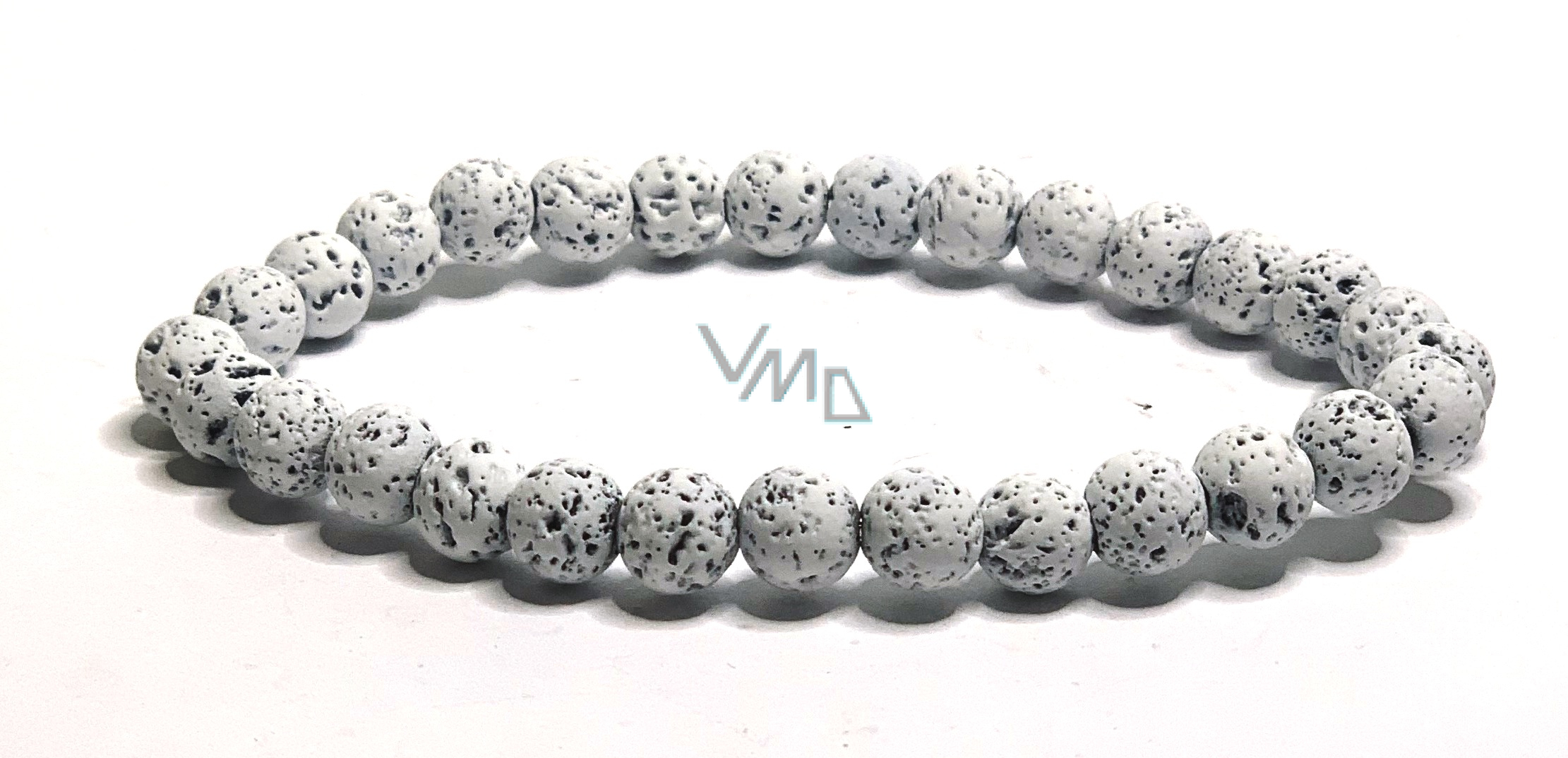 Láva bílá náramek elastický přírodní kámen, kulička 6 mm / 16 - 17 cm, zrozen ze čtyř živlů