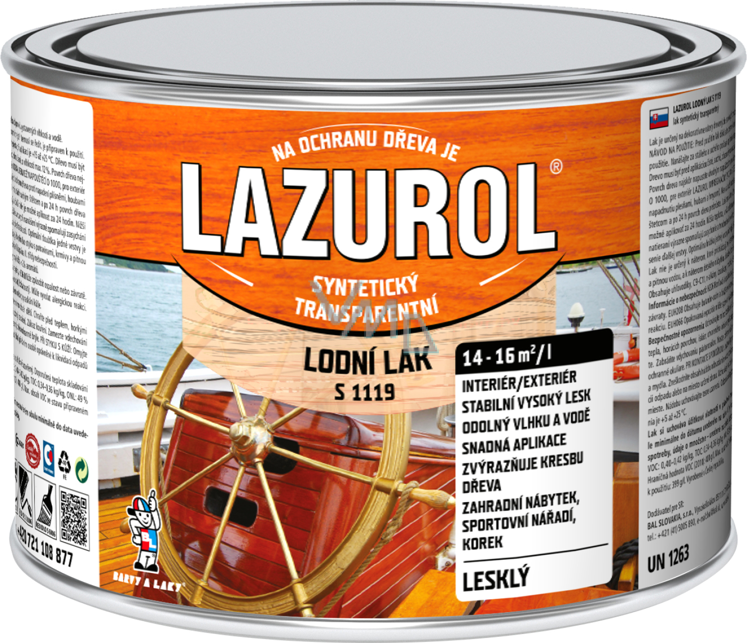Lazurol S1119 lodní lak odolný lak na dřevo bezbarvý, lesk 375 ml