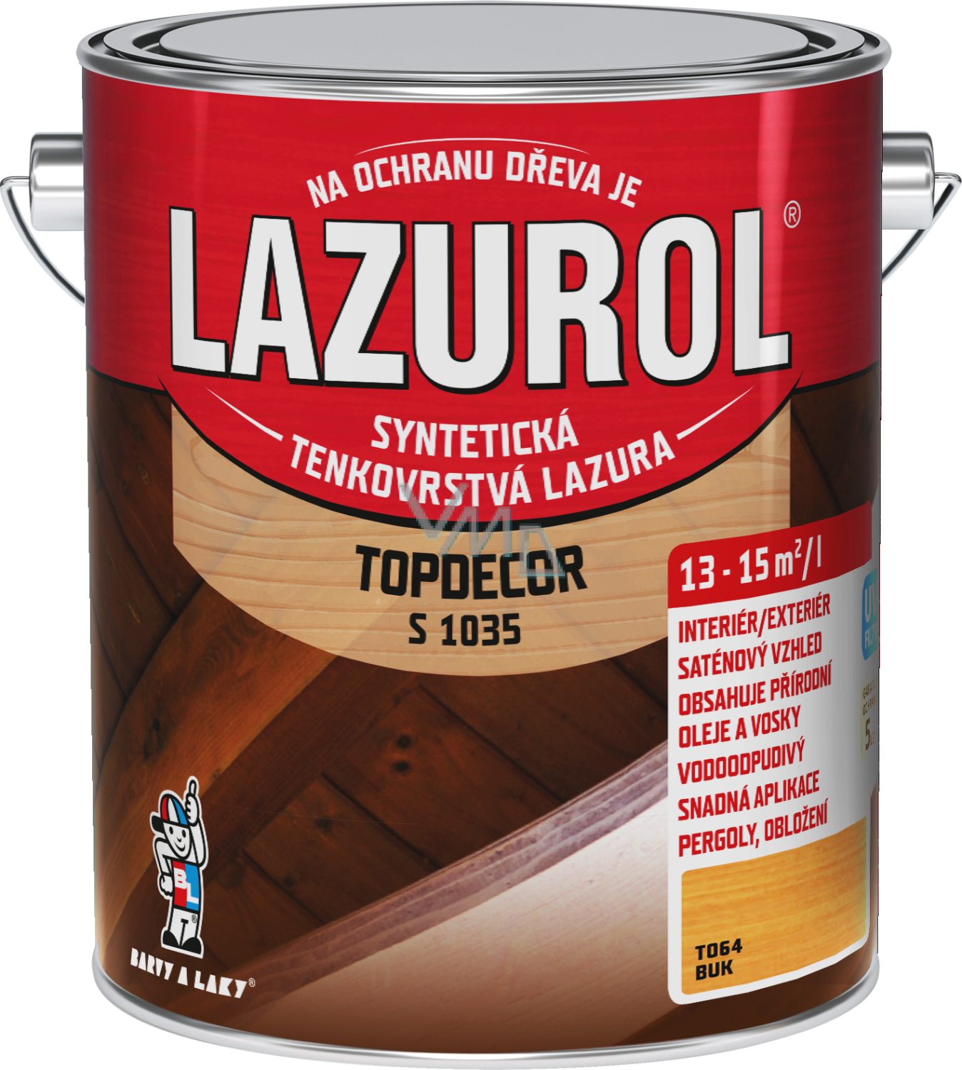 Lazurol Topdecor S1035 cienkowarstwowy impregnat do drewna jest przeznaczony do ochronnych powłok lazurujących drewno twarde i miękkie, narażone na działanie warunków atmosferycznych, jak również do powłok wewnętrznych (meble ogrodowe, drewniane szczyty, podwieszane sufity, okładziny ścienne i sufitowe, płoty, domki letniskowe i drewniane, okna, drzwi, korek, penetracja podłóg drewnianych). Impregnat do drewna zawiera wosk, naturalny olej oraz przezroczyste tlenki żelaza. Głęboko wnika w strukturę drewna i podkreśla jego rysunek. Zapewnia długotrwałą ochronę drewna przed wodą i promieniowaniem UV. Powłoki są trwałe, łatwe do odnowienia i nie pękają. Odcień T000 - naturalny jest przeznaczony wyłącznie do użytku wewnętrznego!!