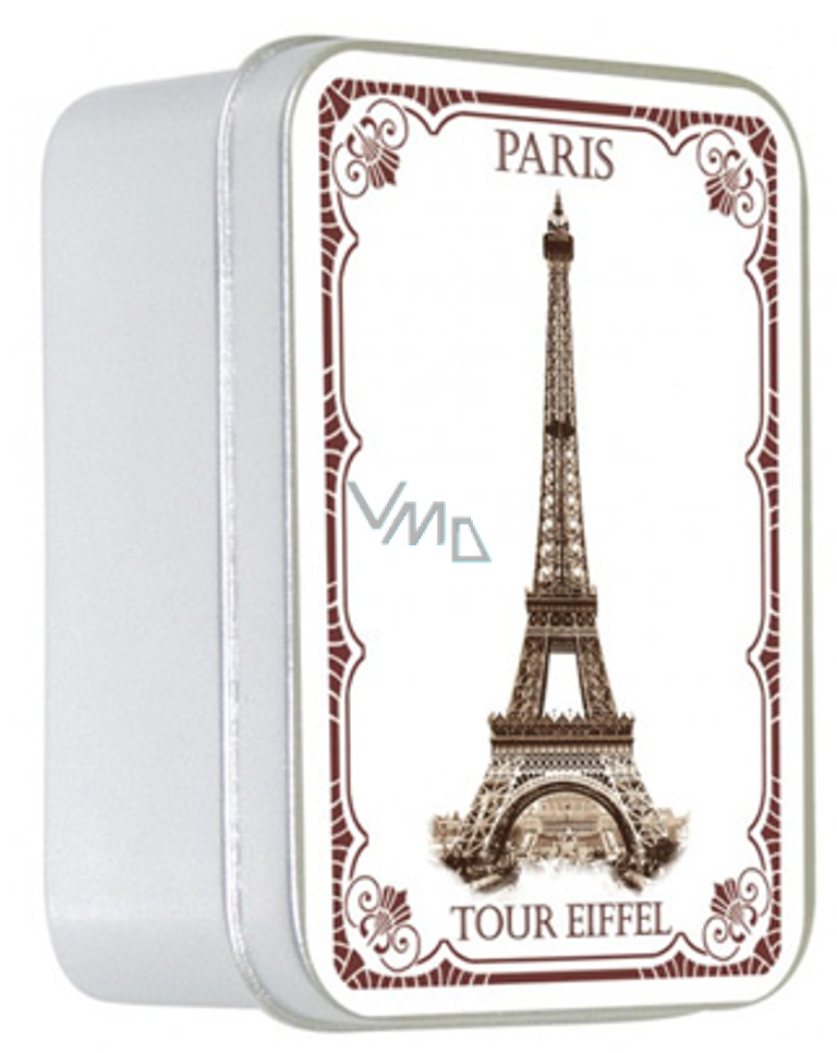 Parfém růže, květinová a romantická vůně, která dokonale evokuje křehkost a jemnost královny květin. Přírodní toaletní mýdlo v plechové krabičce s originálním potiskem s motivem Eiffelovy věže. Luxusní přírodní mýdlo v kvalitní plechové krabičce s originálním potiskem v retro stylu. Skvělé pro použití na cestách nebo potěší jako hezký dárek pro vaše blízké.