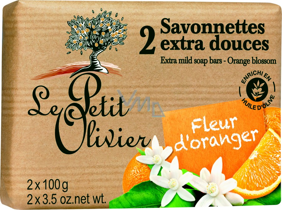 Extra jemné mýdlo francouzské značky Le Petit Olivier s květinovou vůní pomerančových kvítků. Přírodní mýdlo s olivovým olejem a přírodními extrakty.