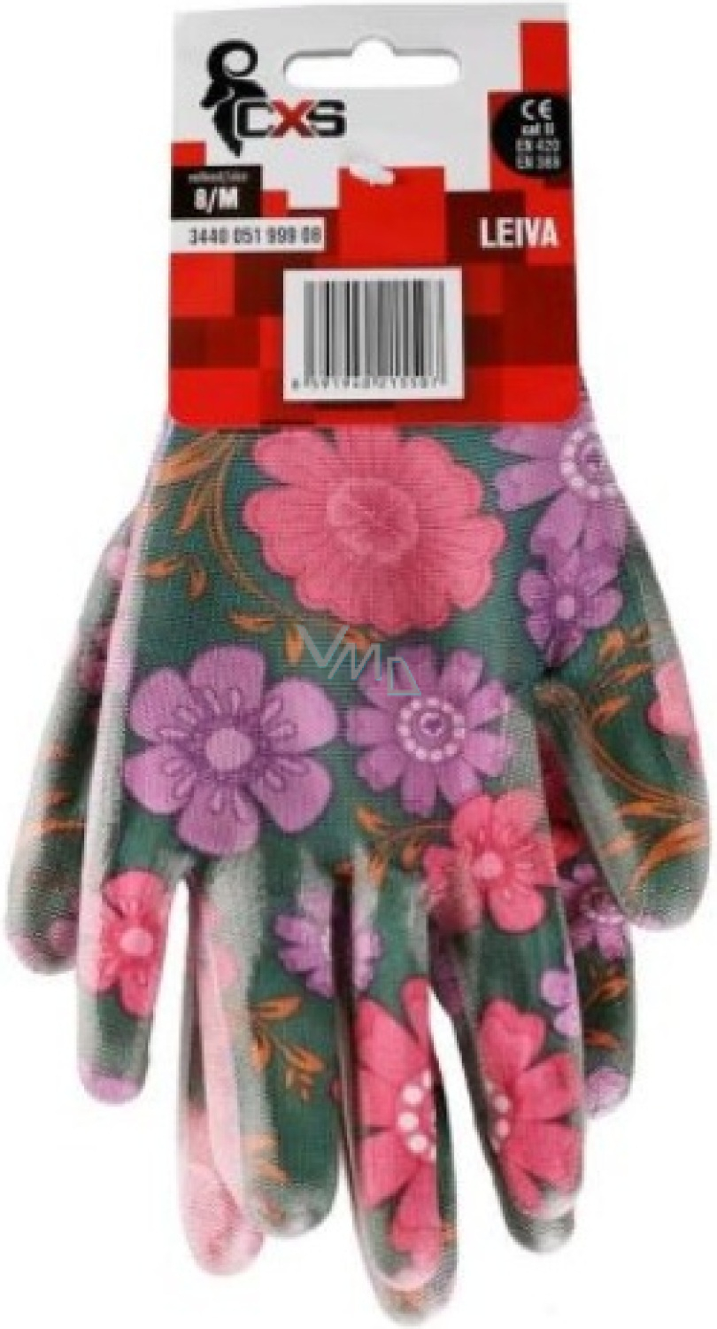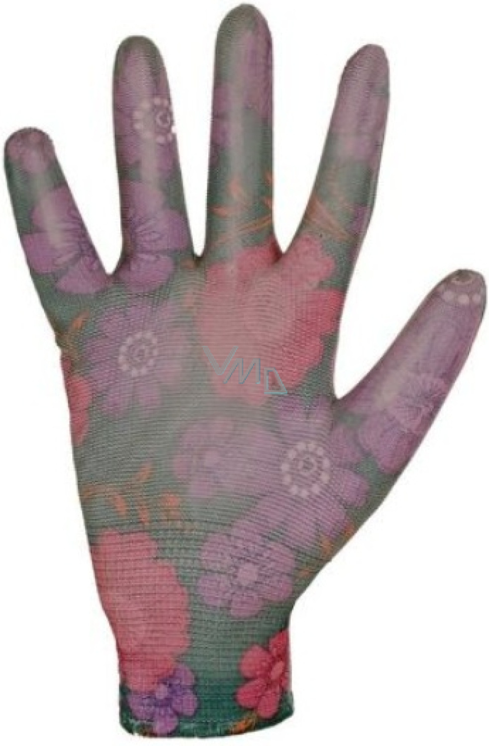 Leiva pracovní rukavice máčené v polyuretanu s květinovým potiskem, velikost 8, 1 pár