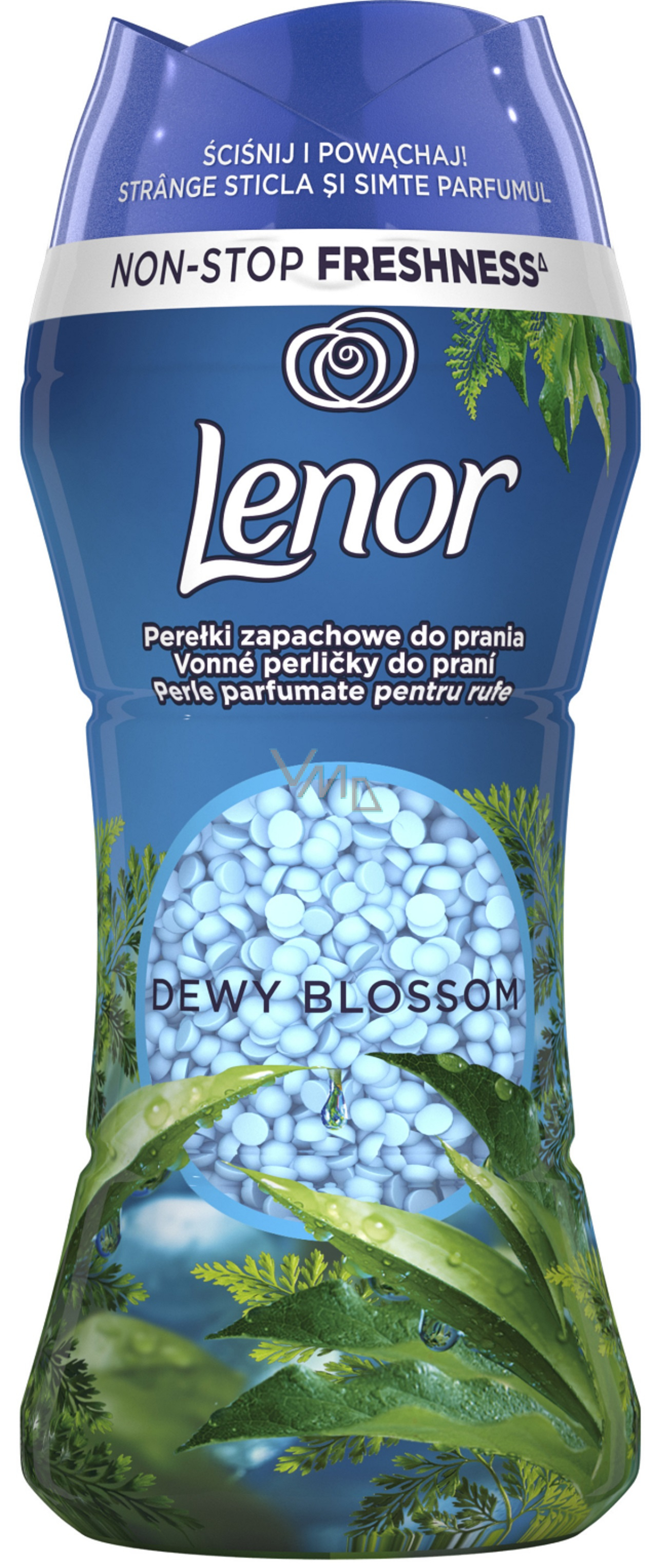 Lenor vonné perličky Dewy Blossom s voňavými tóny zelených bylin, květinovými tóny konvalinky a šumivými citrusy dodají vašemu prádlu intenzivní svěží vůni až do dalšího vyprání (až 12 týdnů, při uskladnění prádla). Jemné nuance spodního tónu vás zabalí do sametového tepla, které vám dodá pocit jistoty a pohodlí na celý den. Vonné perličky jsou okouzlující samostatně a neodolatelné společně s pracím prostředkem a aviváží od značky Lenor.