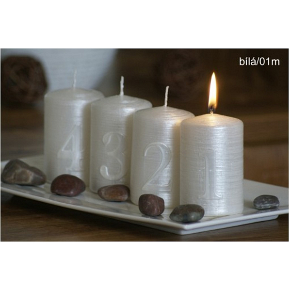 Opis produktu Lima Adventní sada s čísly svíčka bílá válec 60 x 90 mm 4 kusy