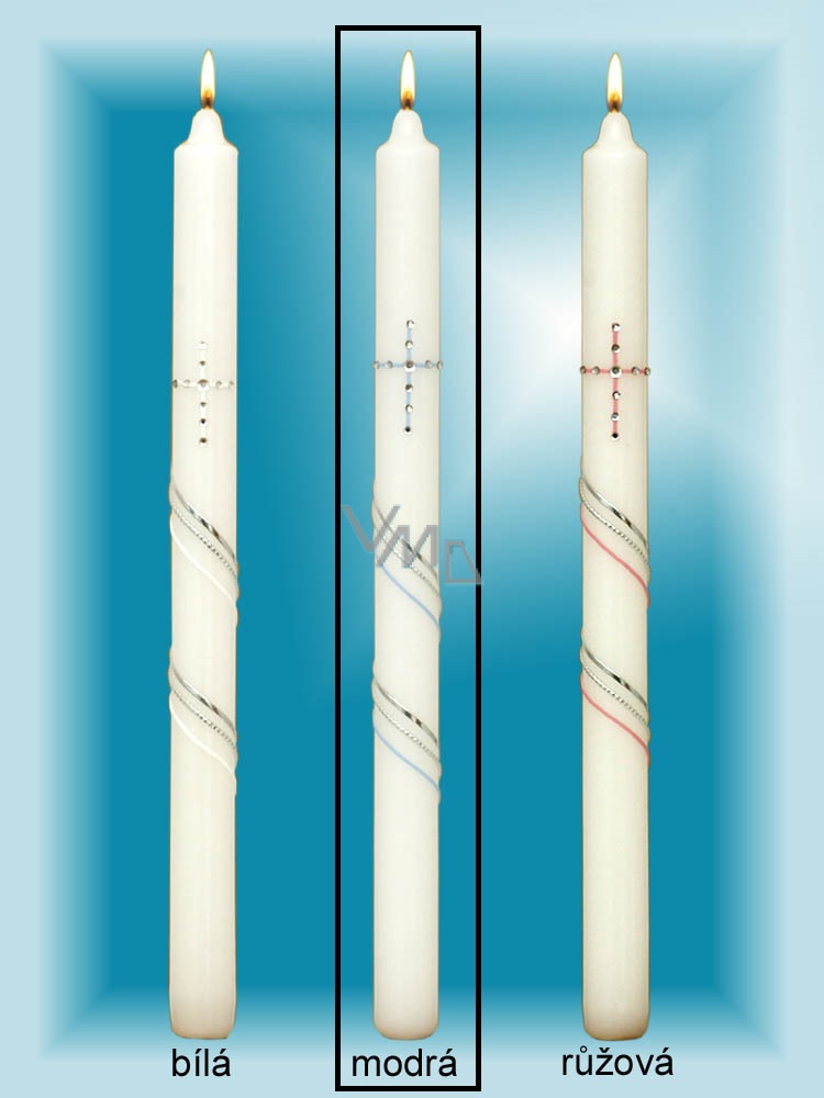 Kostelní svíce ručně zdobená ke křtu nebo I. sv. přijímání. Svíčka slouží k běžnému pálení, ale může být i skvělým dárkem. Kvalita hoření je velmi vysoká. Svíčky jsou vyrobeny ze zdravotně nezávadného parafinu vysoké kvality.
