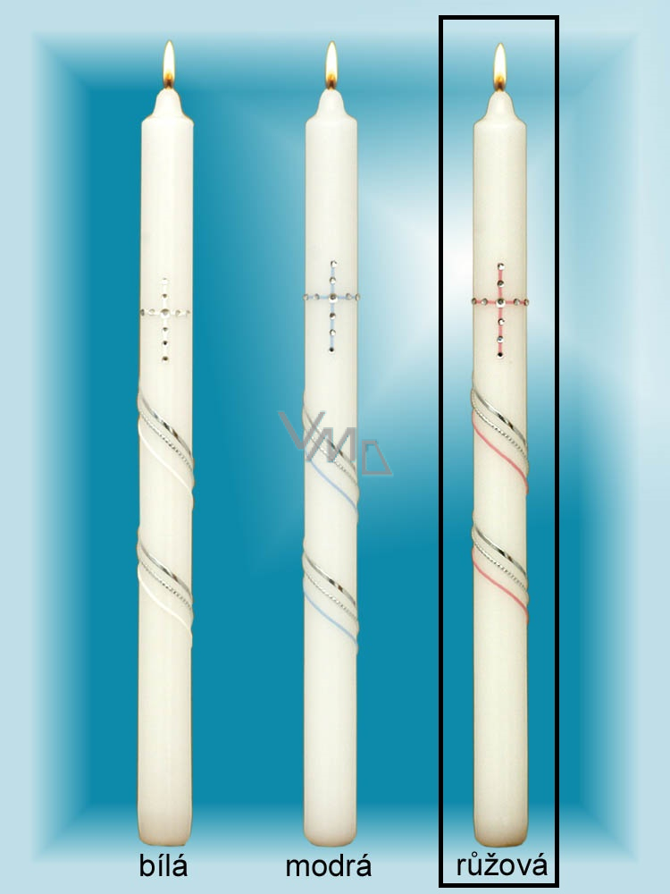 Kostelní svíce ručně zdobená ke křtu nebo I. sv. přijímání. Svíčka slouží k běžnému pálení, ale může být i skvělým dárkem. Kvalita hoření je velmi vysoká. Svíčky jsou vyrobeny ze zdravotně nezávadného parafinu vysoké kvality.