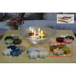 Plovoucí svíčky ve tvaru hvězdy ve zlatých odstínech. Svíčka slouží k běžnému pálení, ale může být i skvělým dárkem. Kvalita hoření je velmi vysoká. Svíčky jsou vyrobeny ze zdravotně nezávadného parafinu vysoké kvality.
