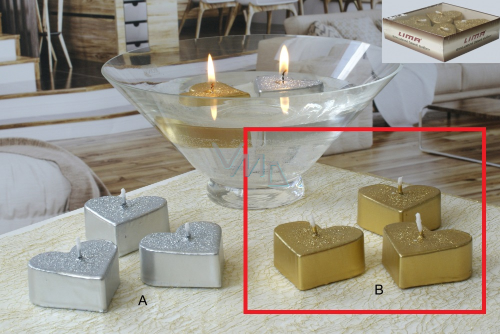 Lima Pływające serduszko świeczka metal złota 4 sztuki