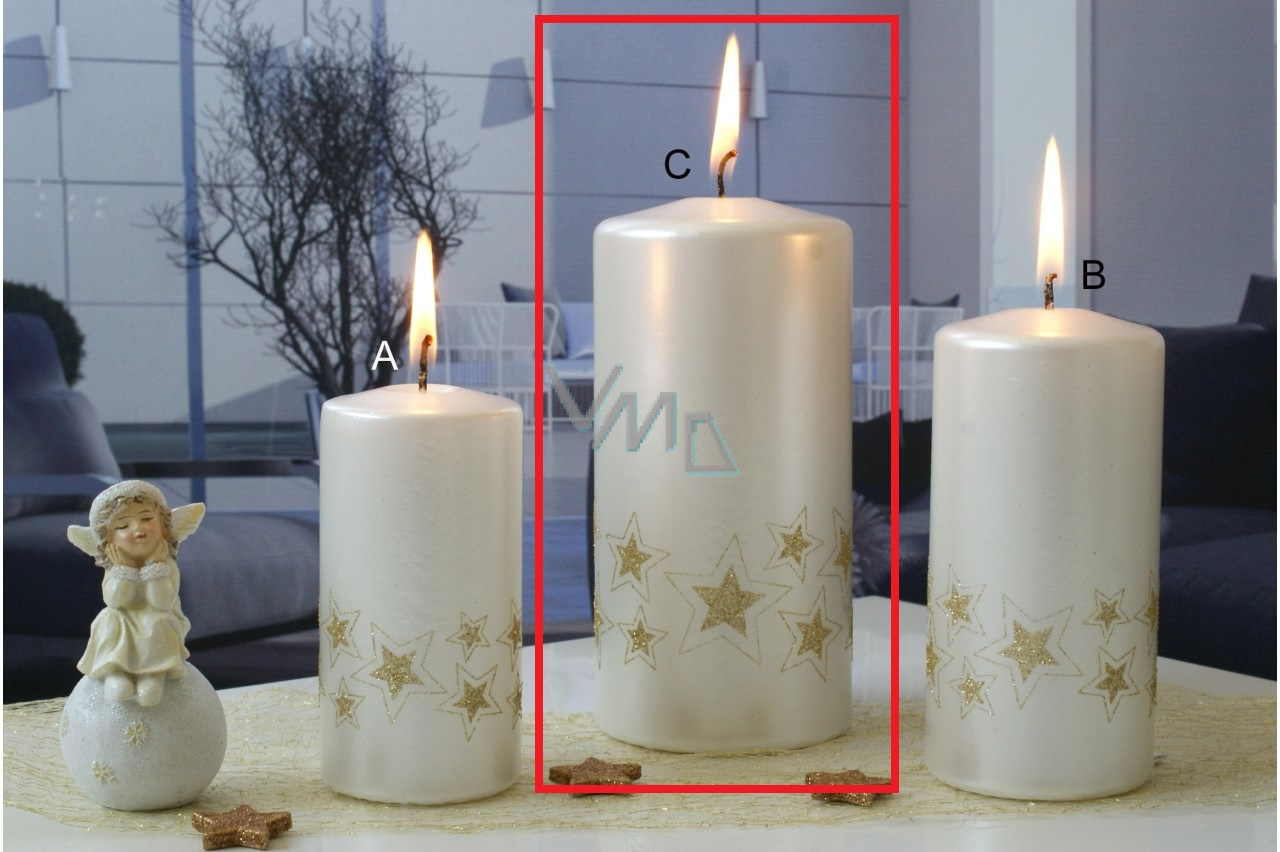 Lima Starlight svíčka bílá zlaté hvězdy válec 70 x 150 mm 1 kus
