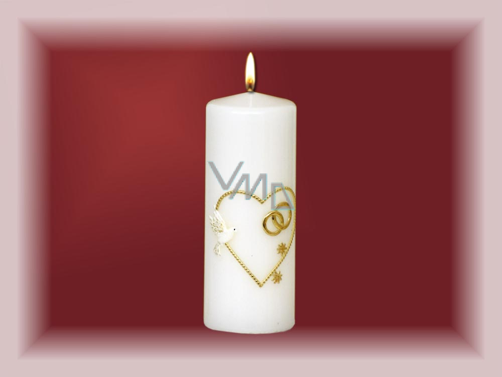 Lima Svatební svíce Svatební srdíčko s prstýnky svíčka bílá válec 60 x 120 mm 1 kus