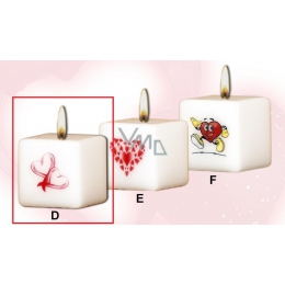 Lima Valentýnská svíčka 2 srdíčka svíčka s obtiskem bílá krychle 45 x 45 mm 1 kus