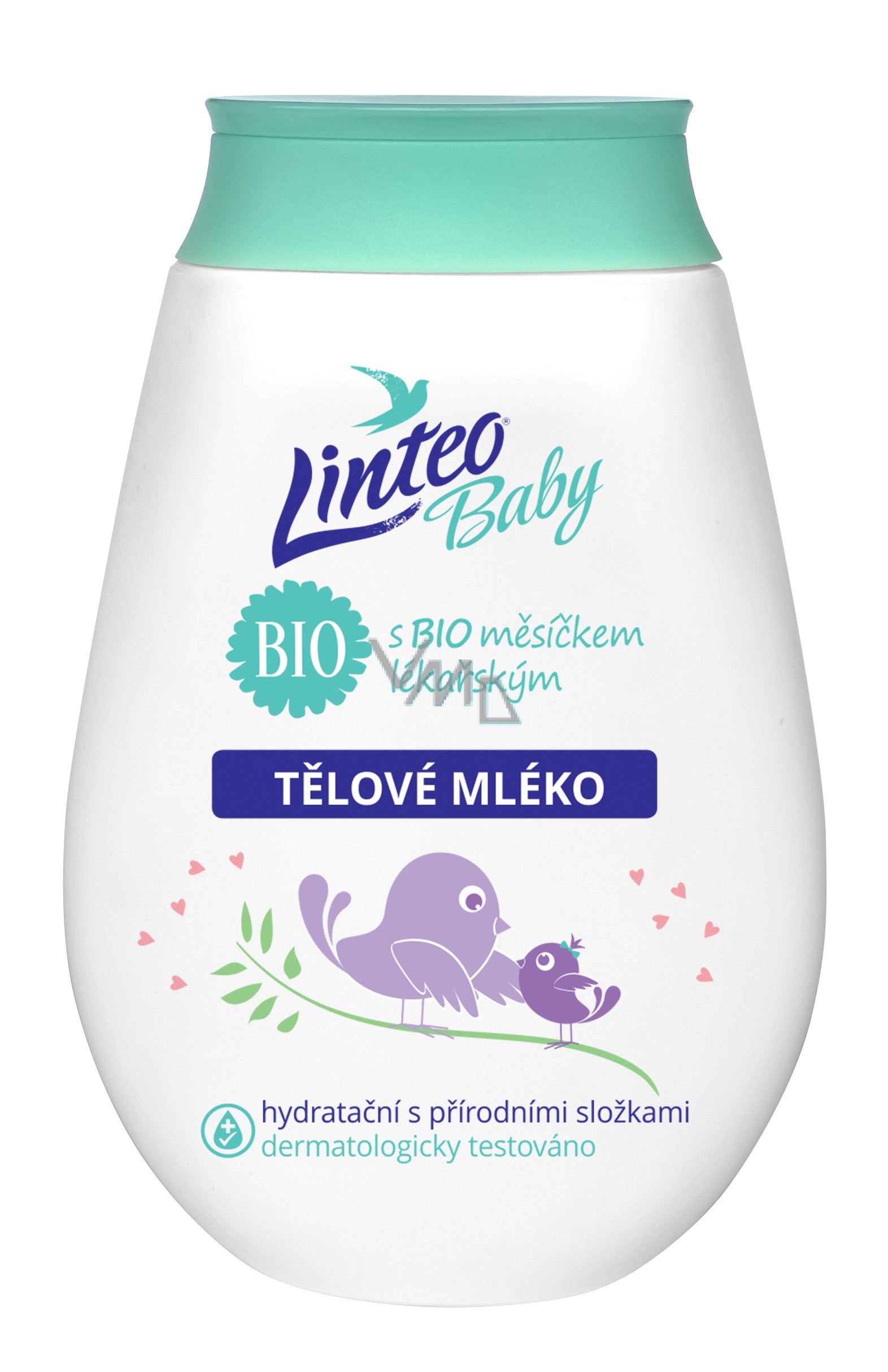 Dětské tělové mléko Linteo Baby bylo navrženo pro šetrnou péči o dětskou pokožku, která je velmi citlivá na vnější vlivy a náchylná k podráždění. Pokožku krásně hydratuje a chrání. Tělové mléko obsahuje certifikovaný extrakt z BIO měsíčku lékařského, který je bohatý na vitamíny. Také obsahuje i Biolon P, který na pokožce vytváří ochranný antimikrobiální štít. Tím pokožce poskytuje dokonalou ochranu a je prevencí před vznikem vyrážky a jiných kožních problémů.