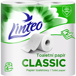 Delikatny, biały, dwuwarstwowy papier toaletowy pakowany po 4 rolkach. Papier toaletowy Linteo Classic jest produkowany z 100% celulozy i oferuje przyjemny stosunek cena - jakość.