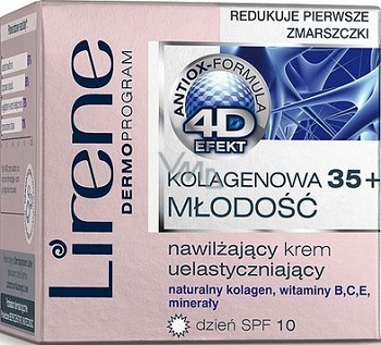 Hydratační krém s kolagenem pro zlepšení elasticity, denní a noční (pro ženy ve věku od 30 do 65 let). Obsahuje přírodní kolagen, který zvlhčuje a vyhlazuje pleť a působí proti stárnutí. Komplex vitamínů B, C, E a mědi působí proti projevům únavy, stresu a vysušování pokožky. Složení aktivních antioxidantů Anti-Ox chrání kůži proti volným radikálům a vzniku nových vrásek.