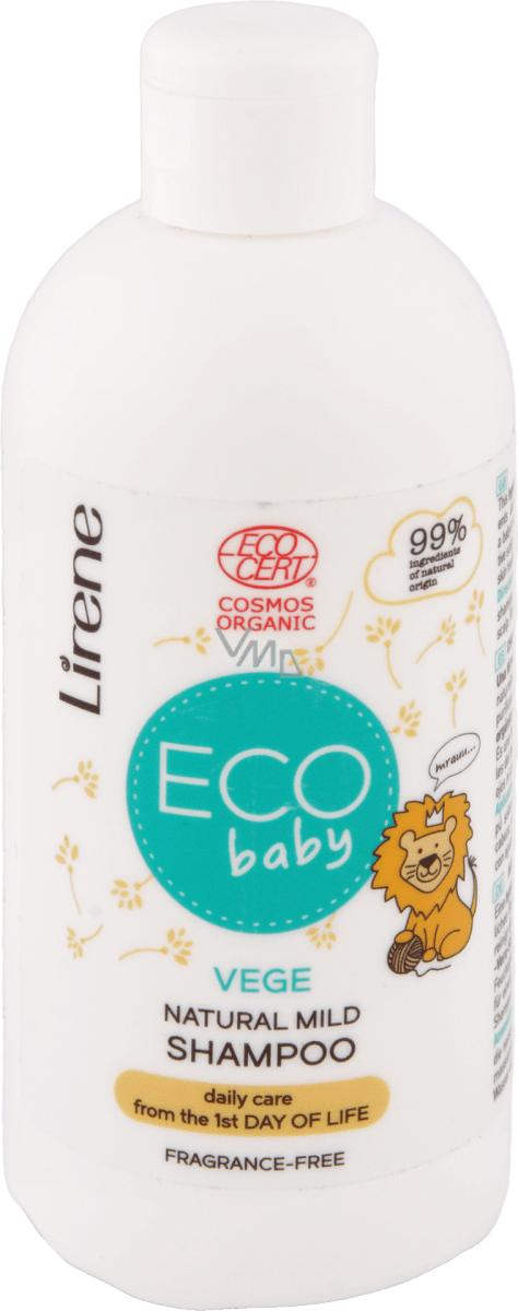 Lirene ECO baby dětský šampon obsahuje hypoalergenní složení založené na ultra-jemných mycích tenzidech, které jemně čistí vlásky vašeho miminka. Organická šťáva z aloe zvláčňuje citlivou pokožku hlavy a je zároveň zdrojem vitamínu B, který napomáhá zdravému stavu pokožky. Při vniknutí do očí šampon nepálí ani nezpůsobuje podráždění, 98 % ingrediencí přírodního původu jemně čistí vlásky vašeho miminka. Složení založené na organických a přírodních ingrediencích pocházejících ze zdrojů schválených ECOCERTEM.