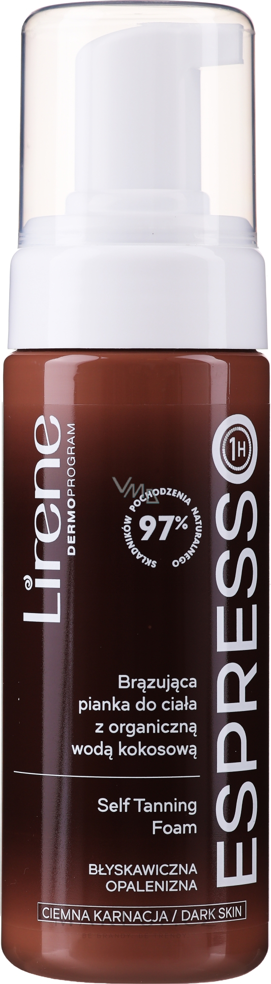 Lirene Espresso bronzující tělová pěna s organickou kokosovou vodou pro opálenou pokožku 150 ml