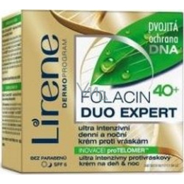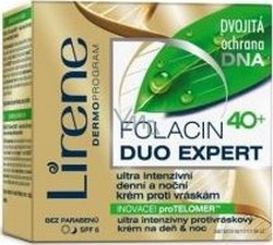 Inovace! Folacin+proTelomer = dvojitá ochrana DNA kožních buněk pro intenzivnější péči proti stárnutí. Folacin (kyselina listová) chrání kódovací posloupnosti DNA, čímž ovlivňuje redukci počtu a hloubky vrásek a opravuje buňky poškozené věkem. Díky obohacení o antioxidační vitamin E tvoří inovační komplex FolacyrianE. Formule ProTeplomer chrání konce lineárních chromozomů DNA (telomery), aktivuje opravné funkce buněk a pomáhá déle zachovat mladost pokožky.