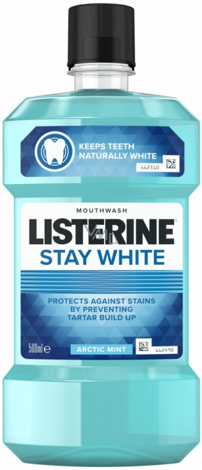 Ústní voda Listerine Stay White pomáhá udržovat vaše zuby dokonale bílé a vaše dásně zdravé. Při pravidelném čištění zubů spolu s kartáčkem, mezizubním kartáčkem a zubní nití je skvělou prevencí proti zubnímu kazu a zabarvování zubů. Pomáhá odstraňovat zubní plak, který vytváří zubní kámen a je živnou půdou pro bakterie způsobující zubní kaz a onemocnění dásní. Používejte kvalitní ústní vodu, aby váš úsměv byl dokonale zářivý!