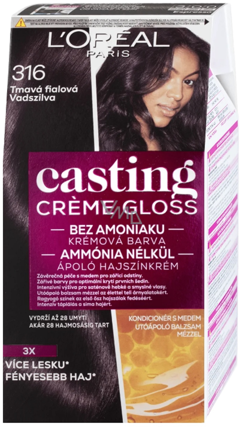 Loreal Paris Farba do włosów Casting Crème Gloss oferuje optymalne pokrycie siwych włosów z wyraźnie lśniącymi refleksami. Stworzy w Twoich włosach błyszczący kolor z jasnymi i widocznymi refleksami dla bardzo naturalnego efektu, który trwa. Skład wzbogacony o mleczko pszczele pozostawia włosy aż 4 razy bardziej lśniące. Płukanka jest odpowiednia dla wszystkich typów włosów - farbowanych, naturalnych i pasemkowych.