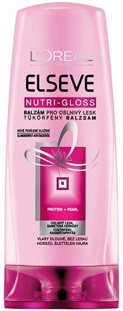 Šampon Elseve Nutri-Gloss okamžitě vyživuje vlasové vlákno. Vlasové šupinky se sjednocují. Vyhlazené vlasové vlákno přitahuje a lépe odráží světlo. Balzám Elseve Nutri-Gloss usnadňuje rozčesání Vašich vlasů, aniž by je zatížil. Vaše vlasy jsou jako znovuzrozené!