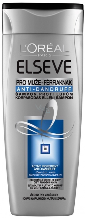 Elseve pro muže v sobě spojuje jemnost šamponu pro každodenní použití a vysokou účinnost šamponu proti lupům. Složení účinně odstraňuje viditelné lupy, při pravidelné používání zabraňuje jejich opětovnému vzniku. Čistí a chrání vlasovou pokožku.