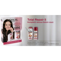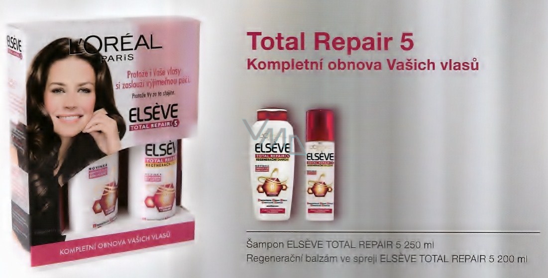 Jsou Vaše vlasy jemné, oslabené, zplihlé, narušené a bez života? 5 problémů, 1 řešení, Elseve Total Repair 5 je 1ní řada péče pro kompletní obnovu poškozených vlasů. Laboratoře L’Oréal vytvořily složení s Pro-Kératinem a Céramidem pro obnovu struktury a vyhlazení povrchu vlasů. Den za dnem jsou Vaše vlasy kompletně zregenerované.