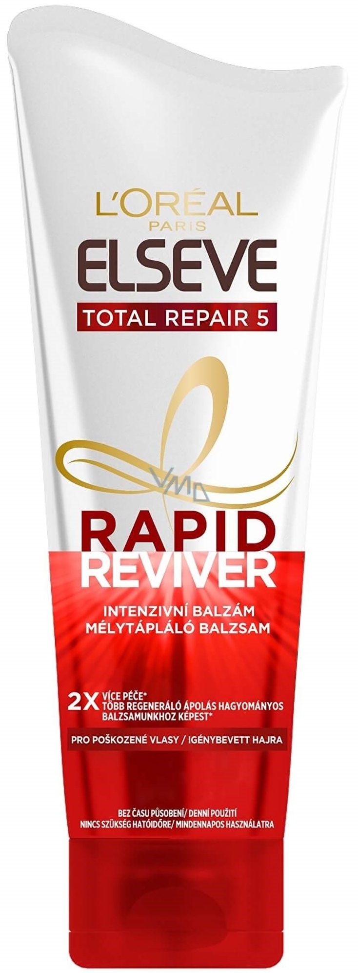 Intenzivní balzám Loreal Paris Elseve Total Repair 5 pečuje o vlasy 2x více než klasický kondicionér. Posiluje a uzdravuje poškozené a lámavé vlasy a poskytuje jim ochranu před dalším ničením.